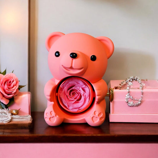 Rose Bear w/ Eternal Rose & Heart Necklace